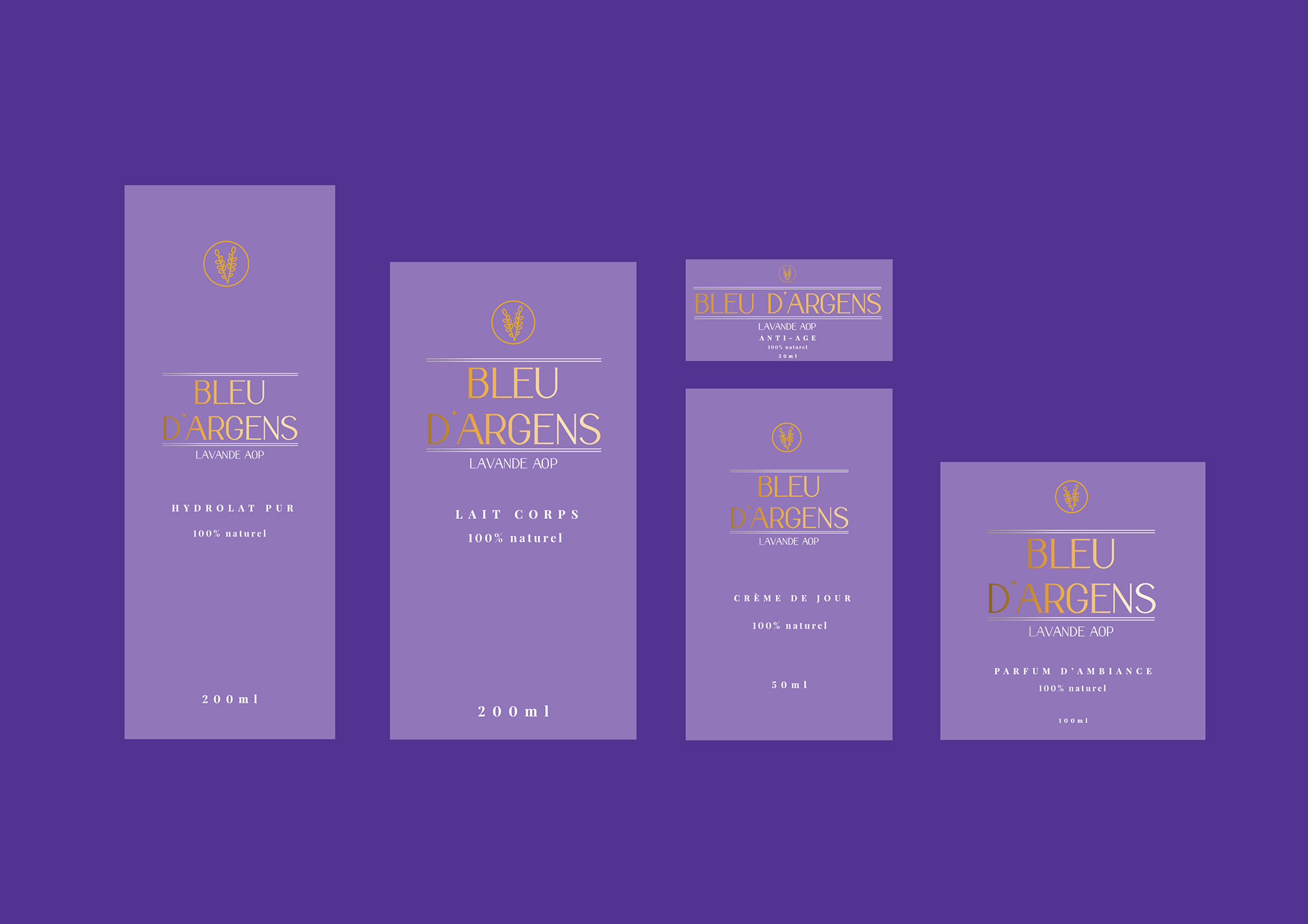 Proposition spontanée faite à Bleu d'Argens pour le logo & les cosmétiques à la lavande AOP