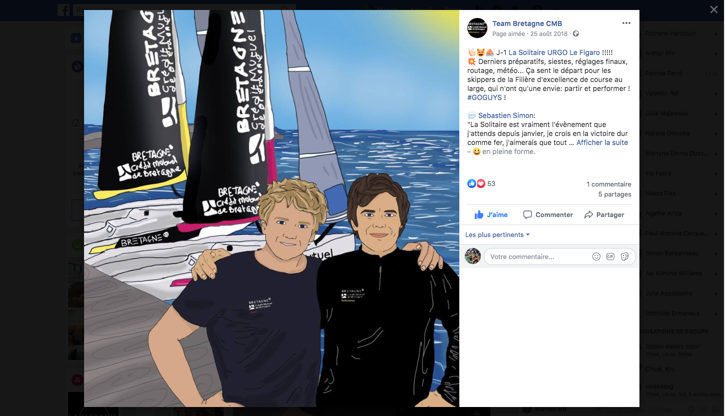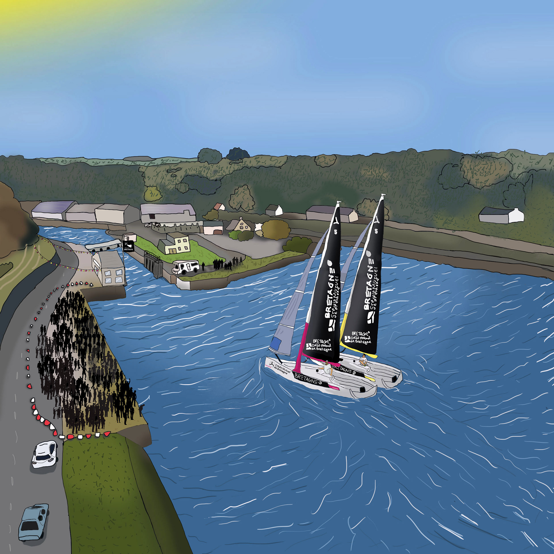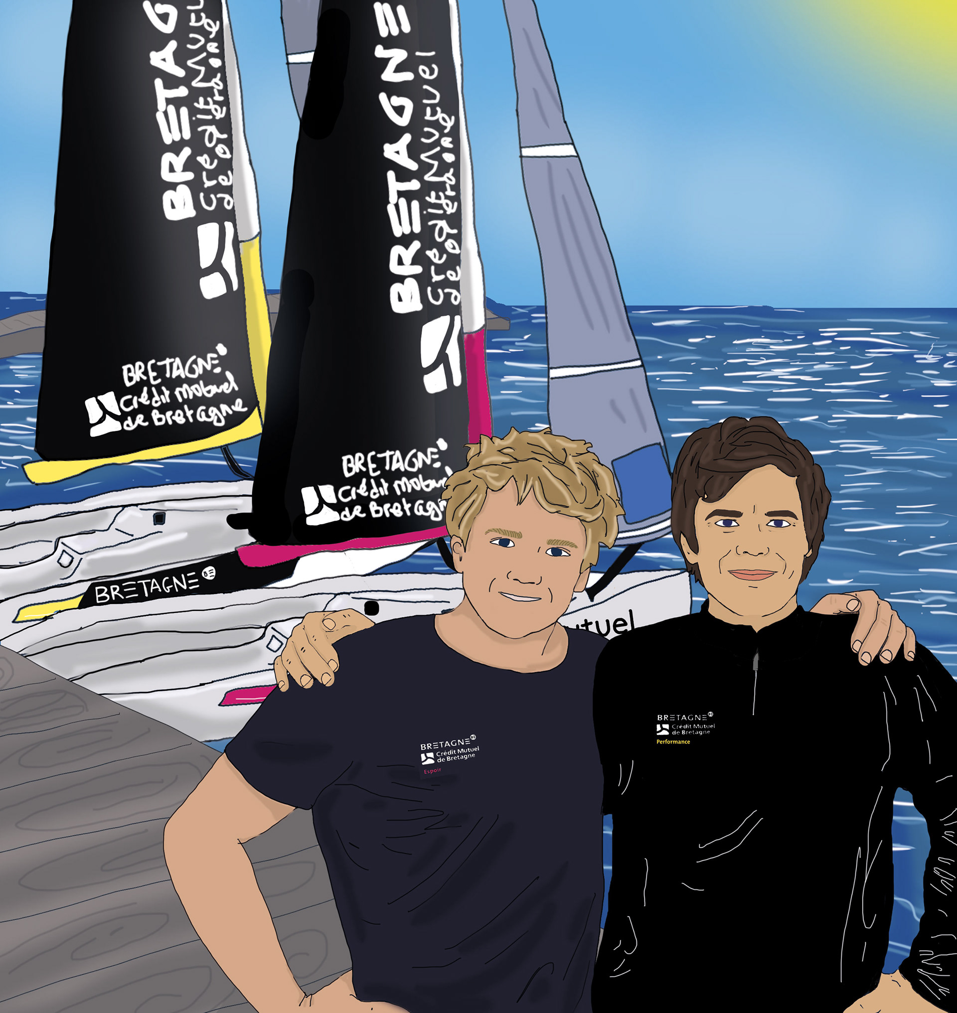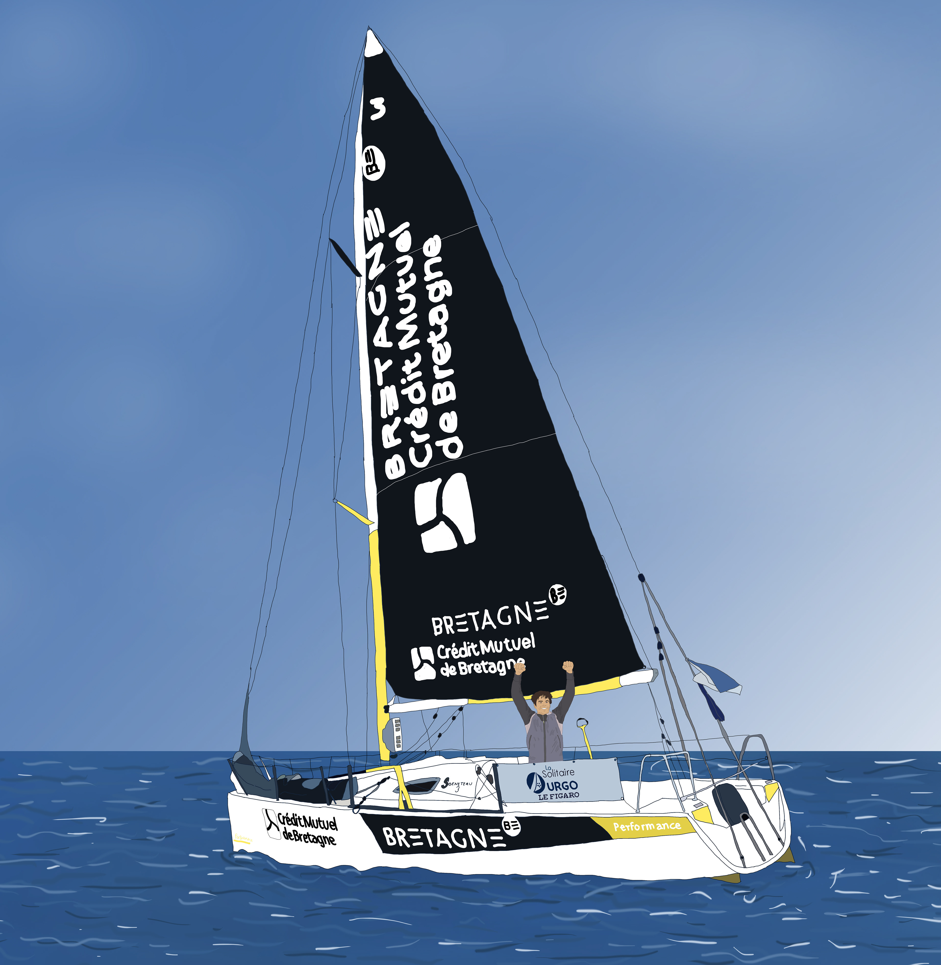 4 illustrations pour illustrer les 4 étapes de l'équipe des skippers Sébastien Simon et Lois Berrehar lors de la Solitaire Urgo le Figaro 2018